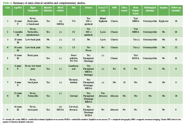 How to cite this article: Moreiro Varela MI, Mirando MG, López Friera MA, Fernández CA. Pyogenic Spinal Infections Without Disc Involvement in Childhood. Rev Asoc Argent Ortop Traumatol 2026;91(1):7-17. https://doi.org/10.15417/issn.1852-7434.2026.91.1.2000