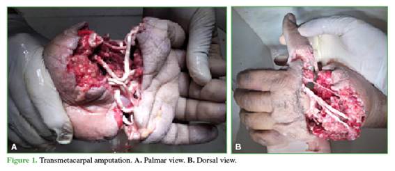 transphalangeal amputations (80%), followed by transmetacarpal amputations.1,2