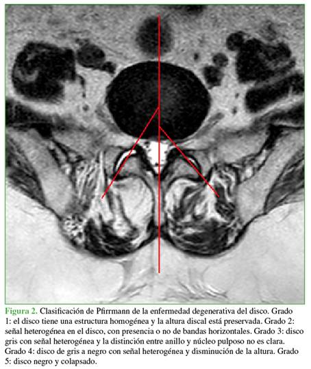degeneración discal de acuerdo con la clasificación de Pfirrmann9 (Figura 2).