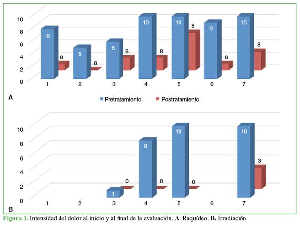 puntaje promedio de dolor raquídeo era de 8,29 antes del tratamiento y