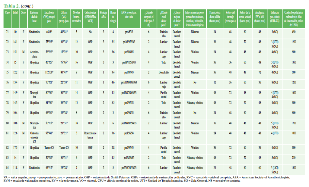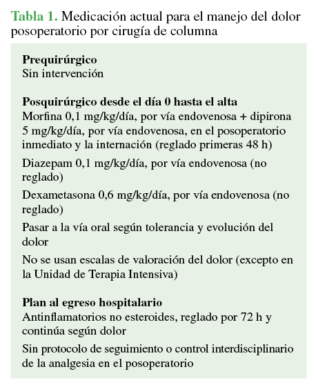 Manejo del dolor posoperatorio por cirugía de columna en la población pediátrica. Resultados preliminares.[Pain mangement following spinal surgeries in pediatric patients. Preliminary results]