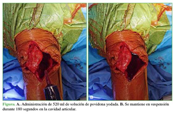 realizar una artroplastia sin irrigación con povidona yodada diluida. Sin