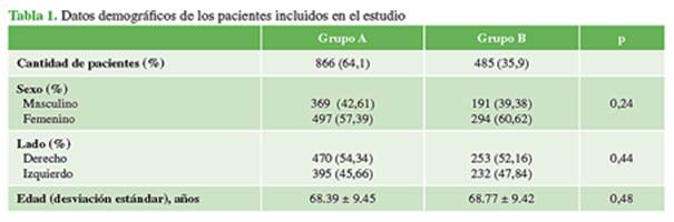 Se realizaron 643 (47,60%) reemplazos de rodilla y 708 (52,40%) reemplazos de