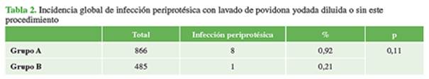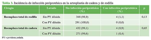 cadera; artroplastia de rodilla; infección periprotésica; povidona yodada.