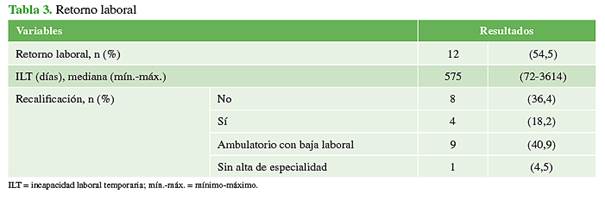 de accidentes laborales, según la posibilidad de retorno laboral. Materiales y