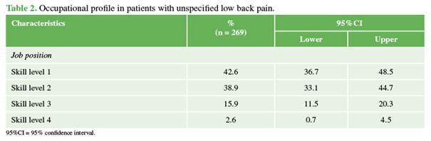 CI: 32.0–43.6). Most patients engaged in moderate physical labor (58.5%; 95%