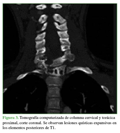 óseo aneurismático; columna torácica; compromiso neurológico; embolización;