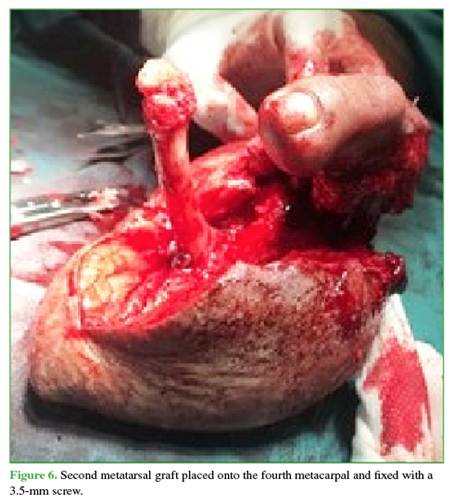 de una técnica similar para resolver este problema. Conclusiones: El retiro del metatarsiano del dedo donante en el pie