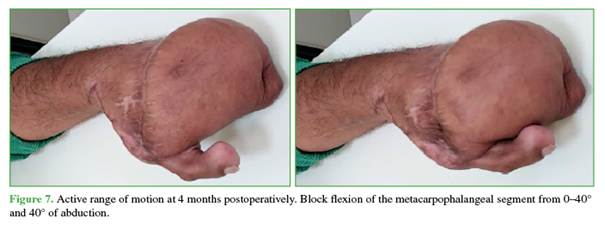hand at the transmetacarpal level (type 2) caused by a cement dosing machine (Figure 1).