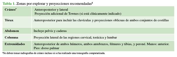 evaluación radiológica ante la sospecha de abuso físico incluye pruebas