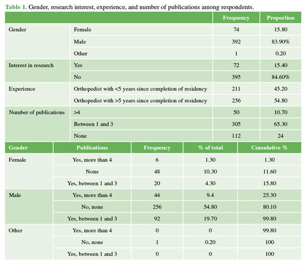 related to research among orthopedic trauma surgeons in Argentina. Materials and Methods: A descriptive cross-sectional study