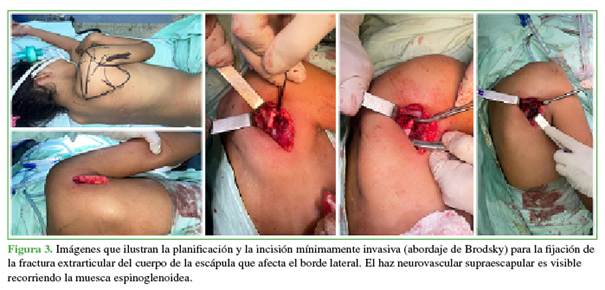 fracturas del cuerpo (principalmente en la porción infraespinosa), el acromion