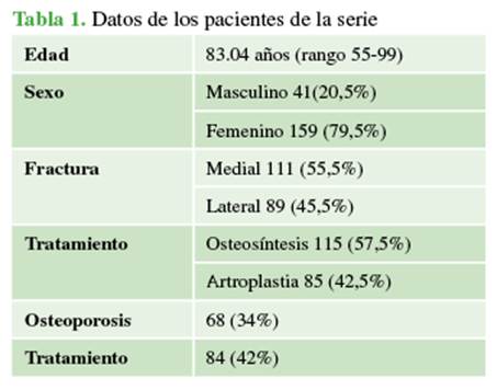 cadera. Estudio retrospectivo de 200 casos. Rev