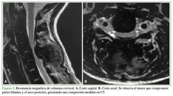 dicho nivel. Se procedió a la resección tumoral y la laminectomía descompresiva