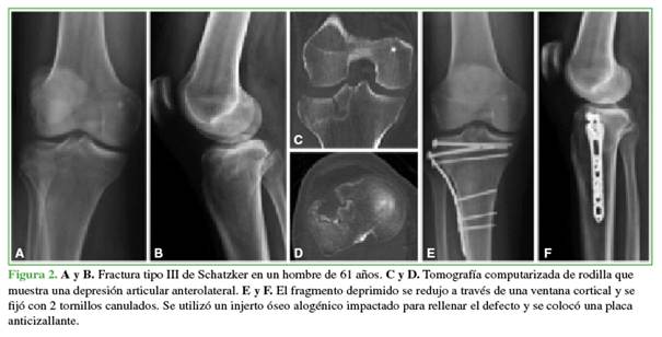 importante de las fracturas de la meseta tibial lateral.2 Según la clasificación de Schatzker, los